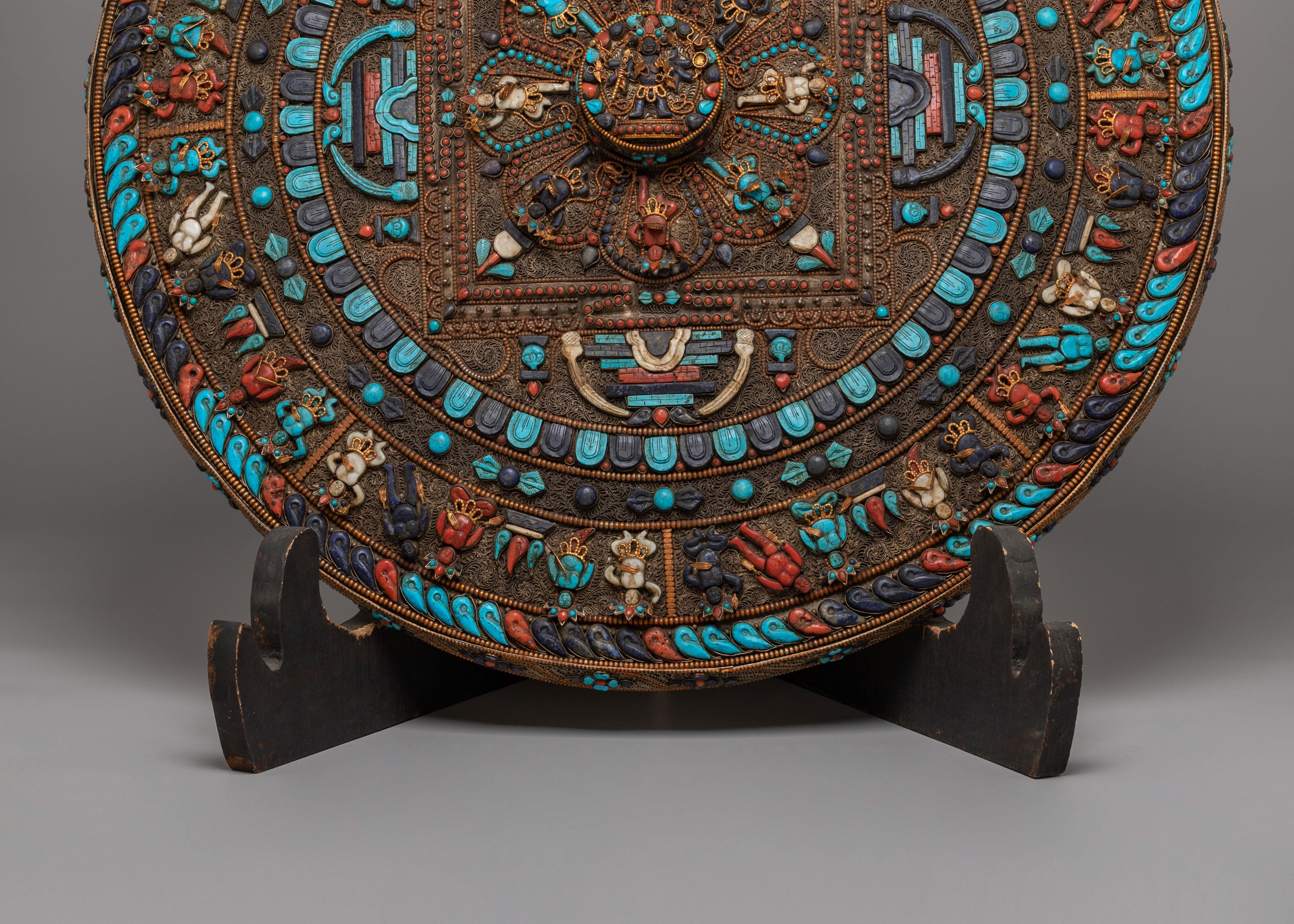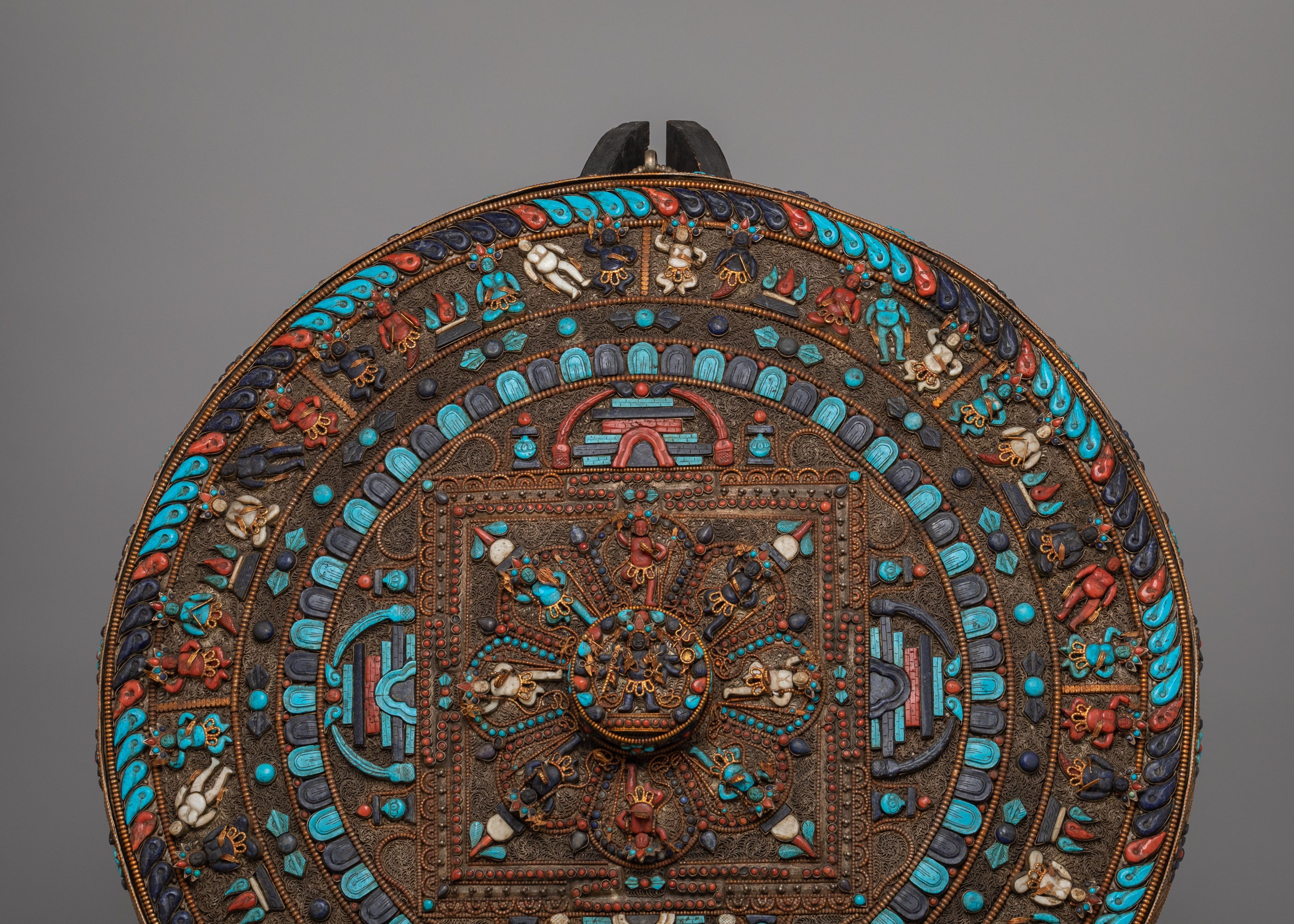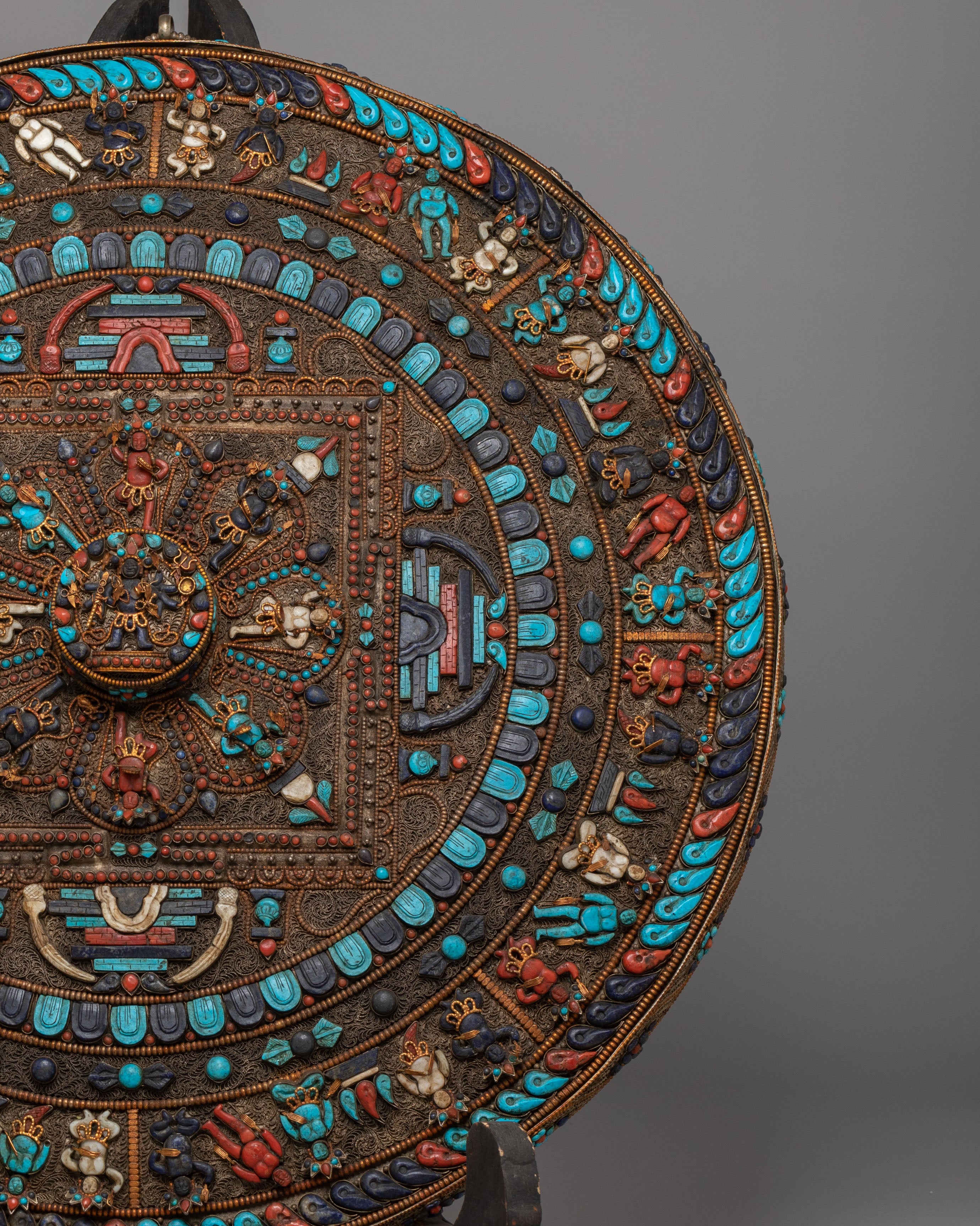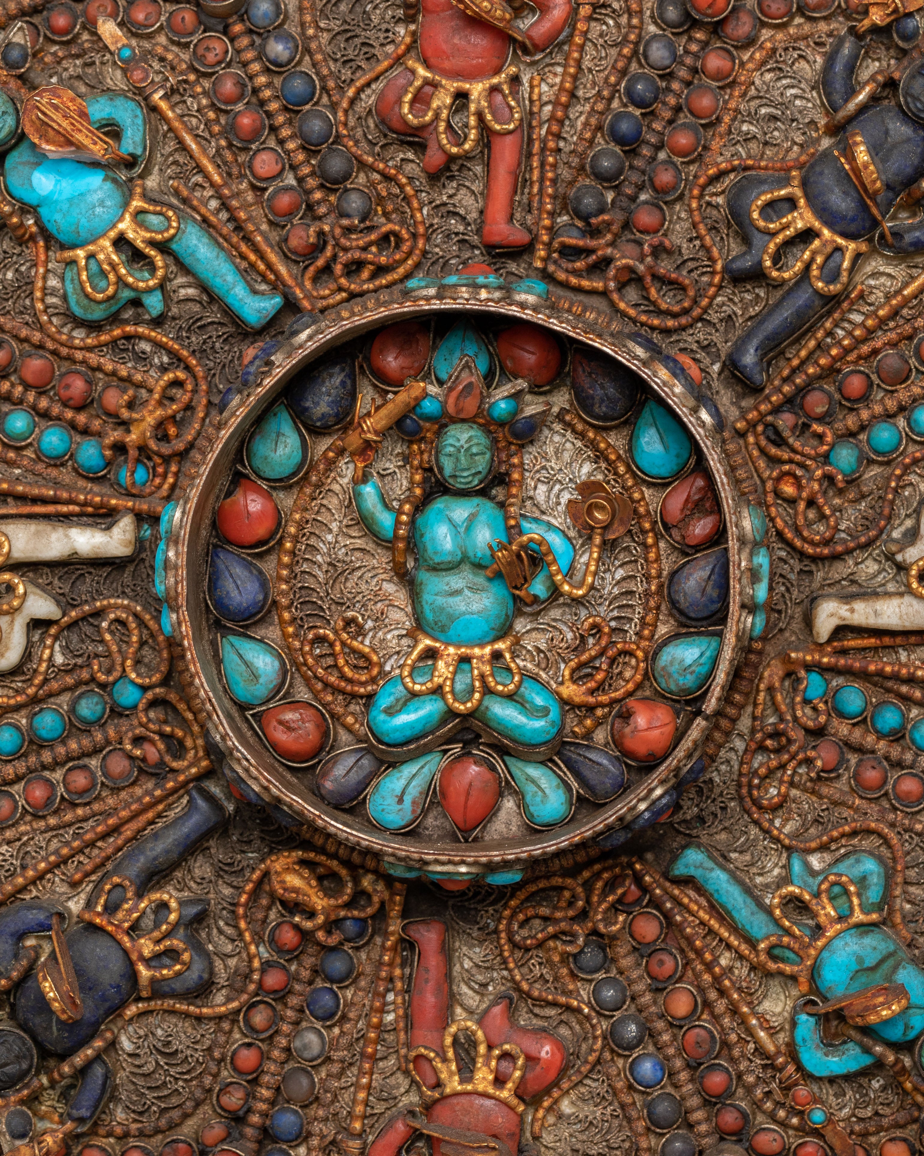 Perfect for meditation rooms, yoga studios, altar spaces, or serene home décor, this Tibetan gemstone mandala wall hanging brings an atmosphere of peace and elevated energy into any environment. As a meaningful expression of spiritual unity and protection, this silver-plated copper mandala art piece serves as a distinguished focal point. Ideal for admirers of Himalayan Buddhist art, gemstone wall décor, Lapis Lazuli mandalas, and handcrafted spiritual home accents, it transforms your wall into a sanctuary of beauty and contemplation.