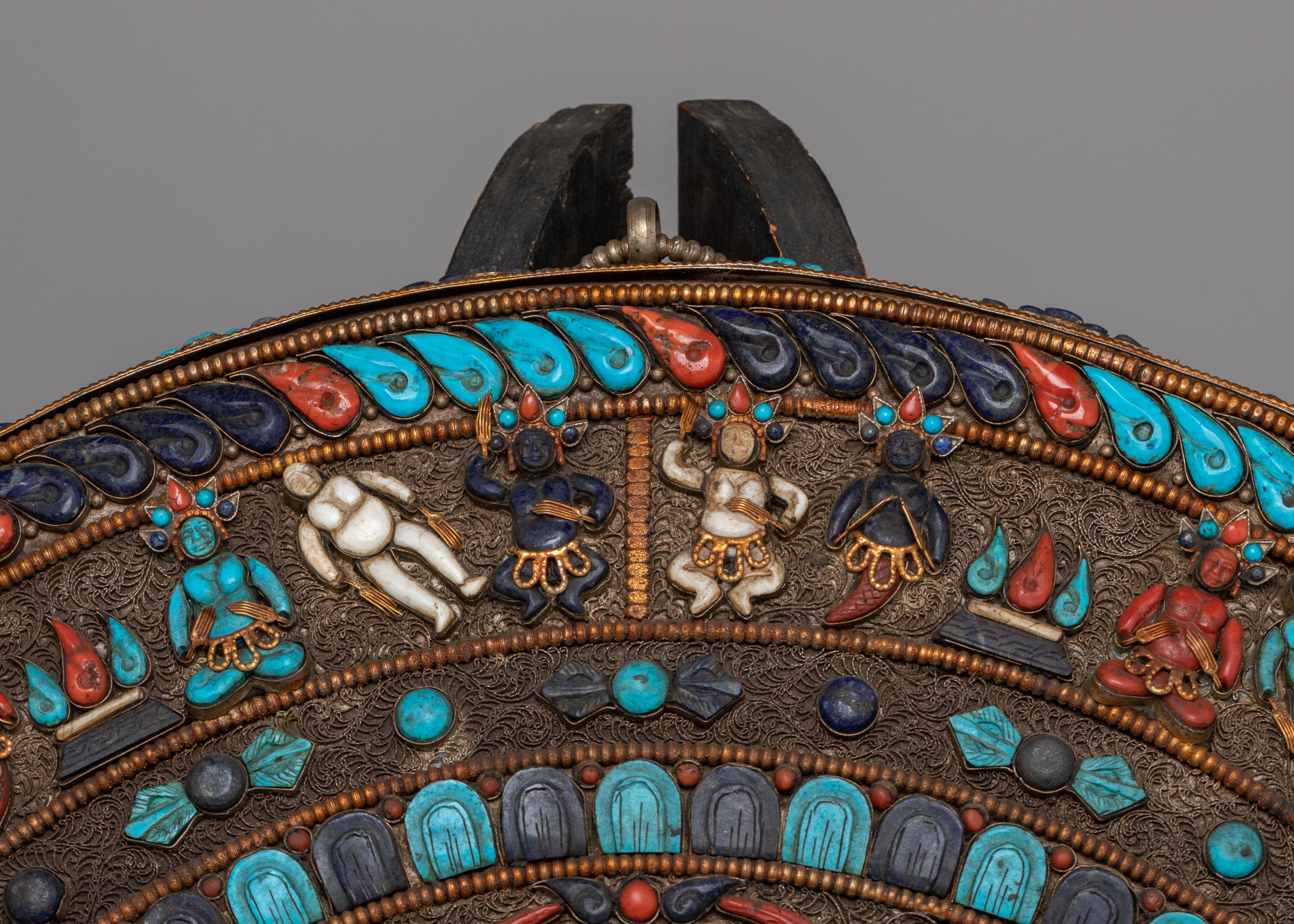 Materials: Copper, Silver Plated, Natural Stone, Lapis Lazuli, Carving Inside Stone