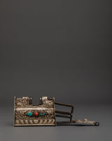 Tibetan Silver Ritual Padlock with Key | Handcrafted Buddhist Chest Lock