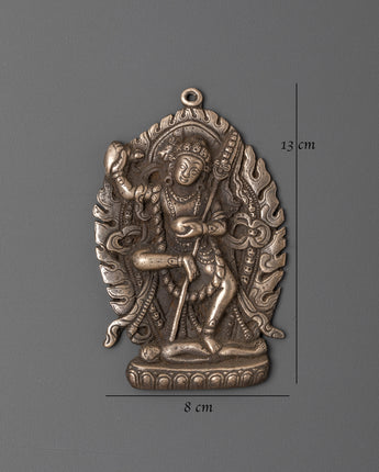 This Tibetan Vajrayogini Wall Hanging is a finely handcrafted piece made from brass alloy, showcasing exquisite Buddhist artistry. Vajrayogini, revered as the embodiment of wisdom and transformation in Vajrayana practice, is depicted in a graceful yet powerful stance. Surrounding flame motifs represent the burning away of ignorance and obstacles, while the intricate ornaments and flowing details highlight her enlightened presence. Every feature carries symbolic meaning, creating a spiritual piece that radiates both strength and compassion.