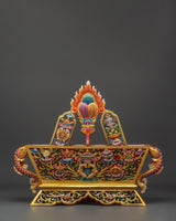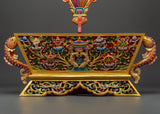 Each Traditional Chemar Box is beautifully created, reflecting centuries of Tibetan creativity and devotion. The wooden construction strongly protects religious things, while the vibrant acrylic colors showcase the detailed carvings and traditional designs. This box is suitable for holding ritual materials, prayer equipment, and personal treasures with spiritual meaning, making it a valuable item for Buddhists and collectors.