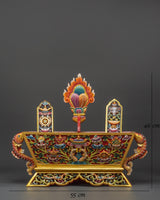 This handcrafted Tibetan Chemar Box is portable and elegant, measuring 46cm x 55cm and weighing 1.94kg. Enhance your holy area with this authentic Himalayan ritual box, which combines traditional craftsmanship with spiritual function. Whether for meditation, altar decorating, or as a unique present, this Traditional Chemar Box is an essential spiritual container.