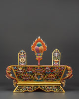 The Chemar Box is a traditional and sacred container used in Tibetan Buddhist rituals and ceremonies, especially during major festivals such as Losar (Tibetan New Year). It is an offering vessel that symbolizes prosperity, abundance, and auspiciousness.