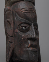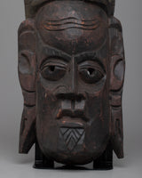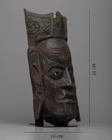 The Buddhist Master Face Mask, at 33cm tall, is a beautiful piece of Himalayan heritage. Crafted from wood with careful attention to detail, this mask captures the spiritual essence of revered Buddhist gurus.