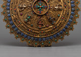 Exquisite Handcrafted Vajra Buddhist Mandala with Gemstone Inlays