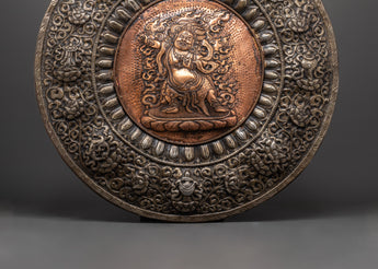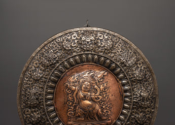This artwork's iron and copper materials are meticulously detailed, giving it both longevity and a sacred, timeless appearance. The robust iron base is accented by copper accents, which give the design a heavenly shine. The Vajrapani Carved Wall Hanging is not only a beautiful ornamental object, but it also represents protection, strength, and the search of spiritual enlightenment. Its rich meaning and superb craftsmanship make it an ideal addition to any room that seeks spiritual energy and peace.