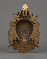 The White Tara Wall-Hanging Buddha Mask is a remarkable fusion of spirituality and artistry. Its brass body, standing at 30 cm in height, exudes a timeless charm.