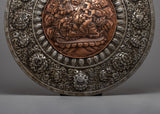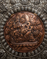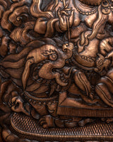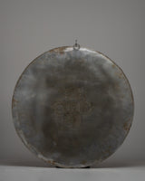 A masterful combination of copper and iron craftsmanship, the Namtoshe Wall Hanging Decor is skillfully crafted to gracefully and elegantly embellish any sacred location. At its center, the inner circle features elaborate copper artwork representing the mystical Namtoshe sign, which denotes good fortune and spiritual protection. The outside portion of the decor, which is made of iron, encircles this center pattern and provides a strong, aesthetically pleasing framework.