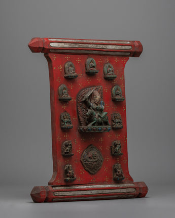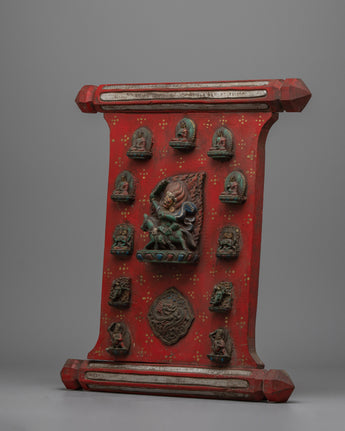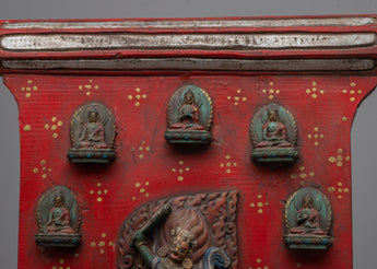 The Palden Lhamo Wall Wood Hanging is perfect for collectors, art followers, and spiritual practitioners because it is a beautiful aesthetic and powerful spiritual symbol. This wall hanging inspires meditation and reverence, whether placed in a meditation area, on a holy shrine, or as a classy accent in any setting. Its deep spiritual symbolism and aesthetic beauty enhance any context, making it a treasured addition to any collection or hallowed space. This item is more than just a pretty decoration; it's a significant relic representing exquisite design and profound spiritual principles.