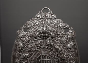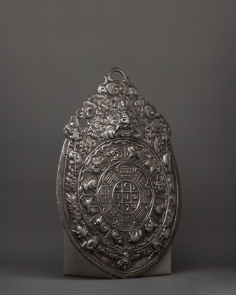 This eye-catching Wheel of Life Wall Hanging measures 55cm tall and 43cm wide and is expertly manufactured from iron. The Wheel of Life is a very spiritual emblem that represents the cycle of birth, death, and rebirth while also encapsulating Buddhist teachings about the interconnectedness of all life. This exquisite artwork adds a strong spiritual presence to any place, making it ideal for meditation rooms, living rooms, or any other setting where serenity and introspection are needed.