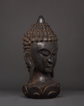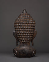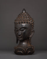 Wooden Buddha Head Decor | Handcarved Spiritual Sculpture