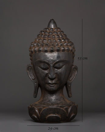 This hand-carved wooden Buddha Head Decor, a symbol of inner serenity, will bring calmness, mindfulness, and spiritual beauty to your environment. Standing 53cm tall and 29cm broad, this tranquil Buddha bust is expertly crafted from wood and finished in a rich black acrylic. The Buddha's meditative expression inspires silence and introspection, making it an appropriate addition to any spiritual setting.