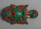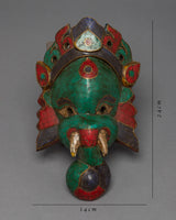 The Ganesh mask is made of wood with gemstones inlaid is an ornate decorative item inspired by the Hindu god, Ganesh. The mask is made of high-quality materials and features lovely patterns and designs, as well as sparkling gemstone embellishments. This mask is an excellent way to honor this deity and invite his blessings into your home. It can be displayed on a stand or a wall For Decorative purposes.