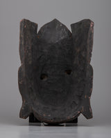 Crafted from wood with careful attention to detail, this mask is a beautiful piece of table decor that exudes heavenly presence and knowledge. Its vintage appeal lends depth and character to interior settings, instilling a sense of respect for Guru Rinpoche's teachings and heritage.
