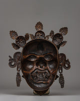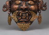 Wrathful Copper Bhairav Mask | Traditional Handmade Sculpture for Home or Temple Decor