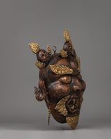 Mahakala is a Hindu deity associated with destruction and protection. He is often depicted as a fierce and influential figure with intense expressions and prominent fangs. In Tibetan Buddhism, Mahakala is considered a protector deity and is revered for his ability to conquer hostile forces and bring blessings to his devotees. He is also associated with the Buddhist principle of non-attachment, as he is said to have transcended all attachment to worldly desires and emotions. Mahakala is considered a deity of great power and is often invoked for protection and overcoming life obstacles. He is often depicted in Tibetan Buddhist art, such as statues and masks, and is a popular subject of devotion and meditation for many Buddhists.