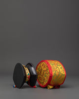 With a total weight of 0.34kg including the case, this damaru is suitable for both home altars and travel use. Its exquisite form and spiritual connotation make it an ideal gift for Buddhist practitioners, monks, or anybody involved in serious meditative activities.