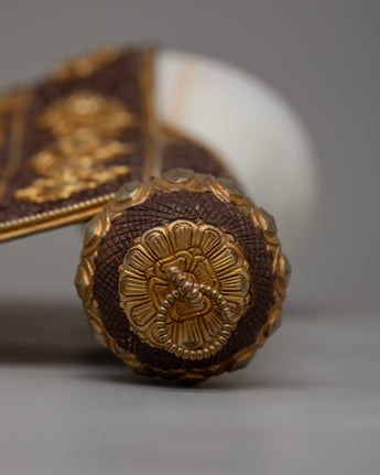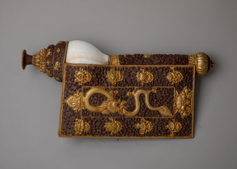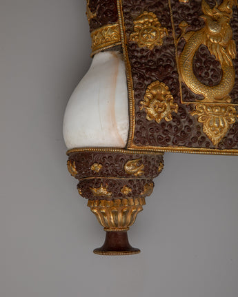 The Buddhist Auspicious Sankha, which is painstakingly crafted by hand, exudes the conch shell's spiritual importance and ancient knowledge. A celestial shine is added by the dazzling gold and copper plating, signifying the divine gifts and auspiciousness it gives. This work of art is a powerful sign of protection, purification, and spiritual harmony that can be placed in your house, meditation area, or sacred shrine to bring blessings and success into your life.