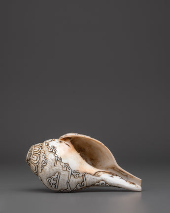 Handcrafted by expert artisans, this Tibetan Buddhist conch shell adds aesthetic beauty and spiritual depth to your collection. The conch shell is regarded as an auspicious item, representing the dissemination of Buddha's teachings and the call to compassion. Whether utilized in rituals or displayed as a cultural artifact, the Avalokiteshvara conch serves as a connection to profound Buddhist wisdom. It is ideal for meditation, spiritual rituals, or as a distinctive centerpiece in any house or temple. Let this historical item bring you serenity and insight on your spiritual journey.