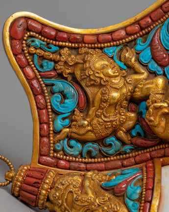 The conch is more than just ornamentation, with original coral and turquoise stones embedded with care. These stones are more than just decorative accents; they hold deep cultural symbolism and embody nature's inherent beauty. The conch's spiritual significance is enhanced by coral, which is often associated with protection, and turquoise, which is a symbol of healing and wisdom.