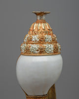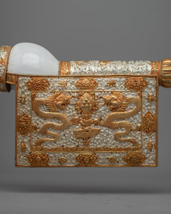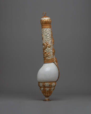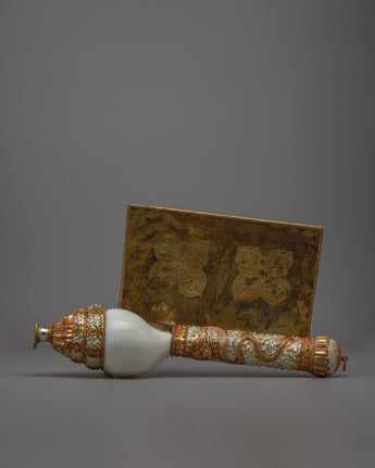 Every conch shell exhibits remarkable artistry and meticulous attention to detail with its elaborate carvings of various motifs. These sankha express the call to propagate the Buddha's teachings and exemplify compassion and wisdom, which has a deeper meaning. This pair is more than simply a decorative piece; it's a valuable spiritual artifact because of the conch shell's significance in Buddhist tradition, which highlights its ability to invoke serenity and enlightenment.