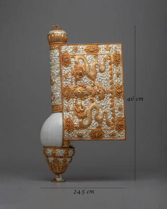 The Buddhist Conch Sankha Pair is a gorgeous handcrafted line that skillfully combines spiritual importance with artistic design. These conch shells are made of a copper body and have an exquisite 24k gold and silver plating. They stand an astounding 46 cm tall. Their opulent finish draws attention to them as a fascinating focal point for any altar or meditation room in addition to adding to their aesthetic appeal. Their brilliant beauty is enhanced by the combination of silver and gold plating, which catches the light and draws attention in any situation.