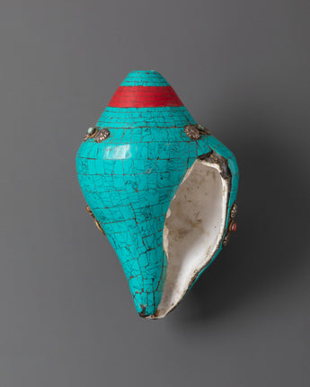 Buddhist Handmade Turquoise Conch | Spiritual Tool for Meditation & Rituals