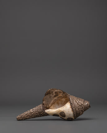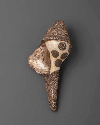 Buddhist Ritual Conch with White Metal | Conch Shell for Blessings