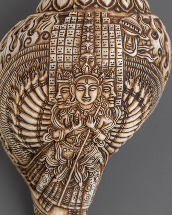 Carved Conch for Meditation | Spiritual Tool with Deity Figure