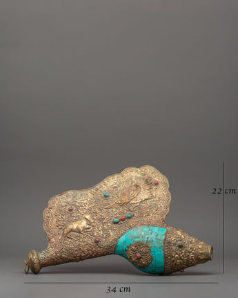 Filigree Work Conch for Ritual | A Sacred Tibetan Offering Tool