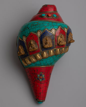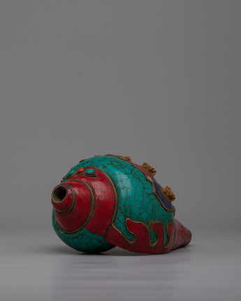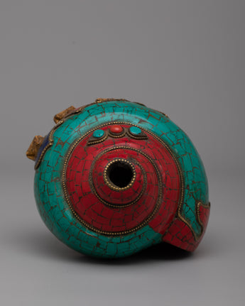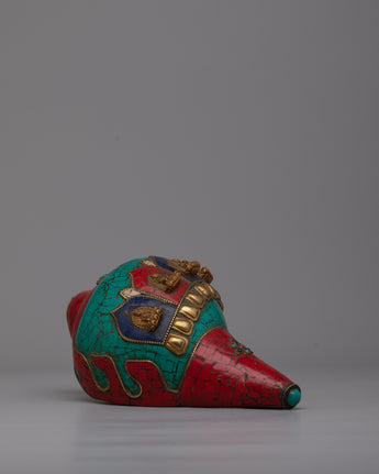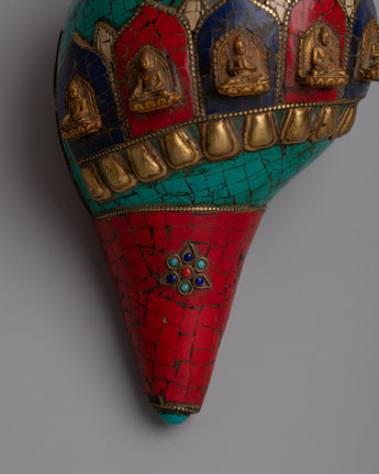 The Conch Shell Artwork is a monument to the remarkable creativity of its creators, since it was crafted by hand with extreme care and attention to detail. The combination emitted stones gives the artwork layers of richness and depth while also conveying a sense of harmony and spiritual serenity. This masterpiece encourages you to immerse yourself in its fascinating beauty and establish a connection with the divine energy inside, whether it is placed as a decorative addition in your house or in your meditation space.