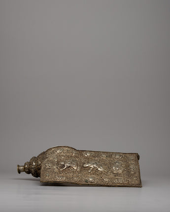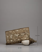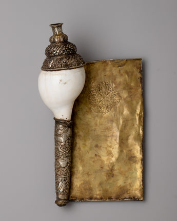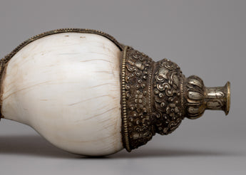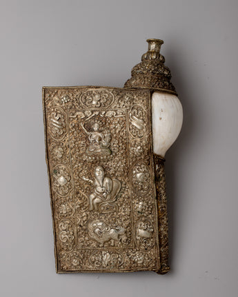 With its gleaming silver finish and exquisite engravings, the Conch Shell Trumpet rises above mere workmanship to become a hallowed item of devotion. Its presence exudes sanctity and peace, urging all who see it to pause and ponder the divine mysteries it embodies. As its melodies fill the air, they serve as a beacon of spiritual connection, bringing the earthly and divine together in a harmonious symphony of life.