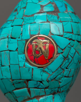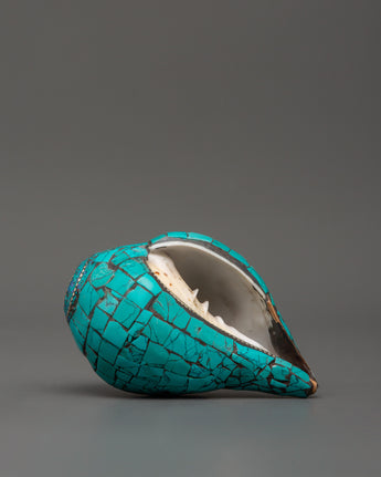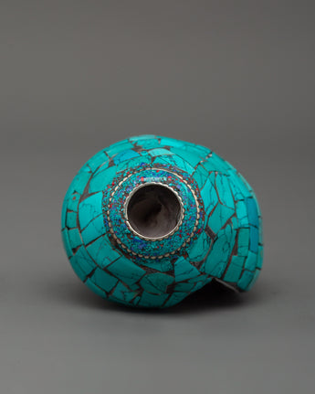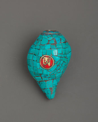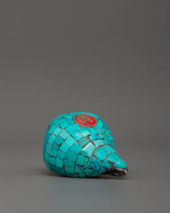 Conch Shell With Turquoise and Coral Stones | Buddhist Ritual Conch