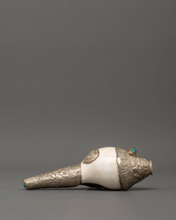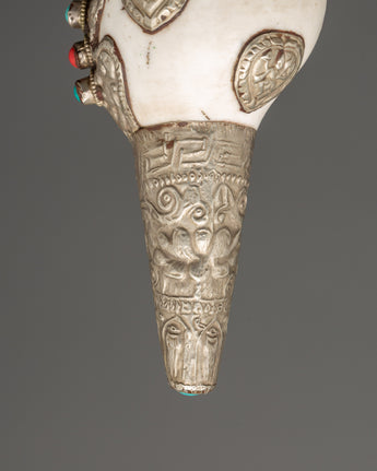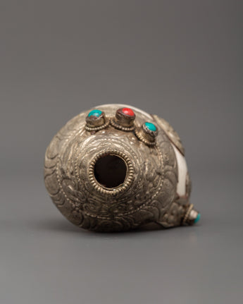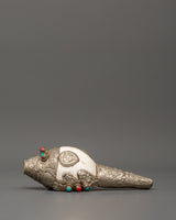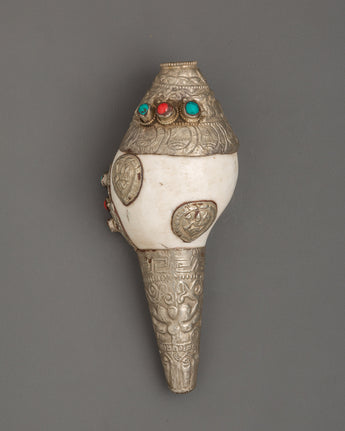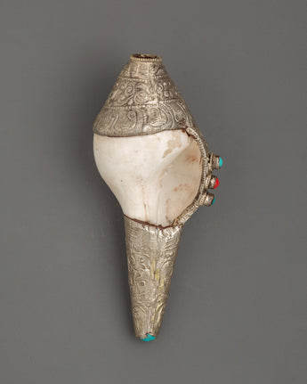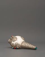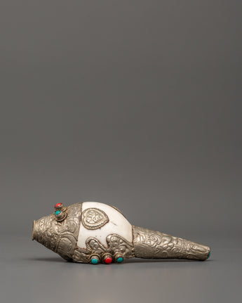 Conch Symbol of Sound and Spirituality | Silver Plated with Turquoise & Coral Inlays