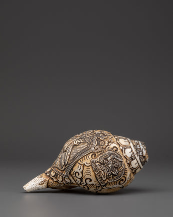Conch with Guru Rinpoche Carving | Sacred Tibetan Ritual Sound Tool
