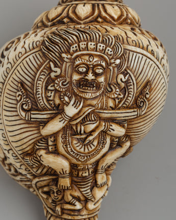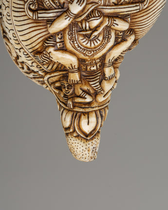 Conch Shell with Shakya Mahakala Carvings | A Powerful Ritual Artifact