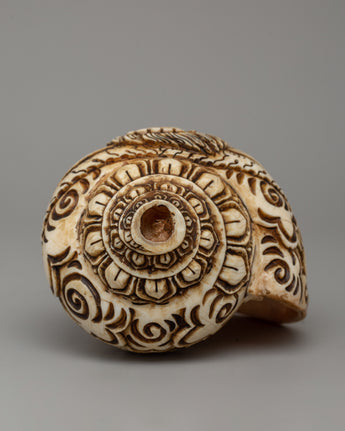 Handcrafted Conch Shell with Shakya Mahakala Carvings for Buddhist Rituals