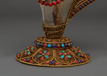 This gold-plated altar ornament is ideal for a range of spiritual practices, serving as a powerful chakra healing tool, a Reiki energy enhancer, and a meditation aid. Whether you're seeking a meaningful chakra energy presence, a spiritual offering for your Buddhist shrine, or a stunning addition to your home decor, this handcrafted healing conch shell exudes serenity and protection. Its combination of cultural significance, Tibetan craftsmanship, and spiritual intention makes it a prized treasure among individuals who value healing crystals, holy altar decorations, and contemplative items. This multipurpose piece is more than simply a decoration; it's an energetic tool that promotes balance, peace, and spiritual progress.