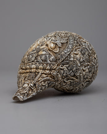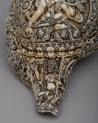 Deities Carved Buddhist Sankha | Unveiling Spiritual Mastery of Artistry