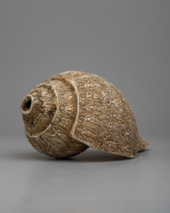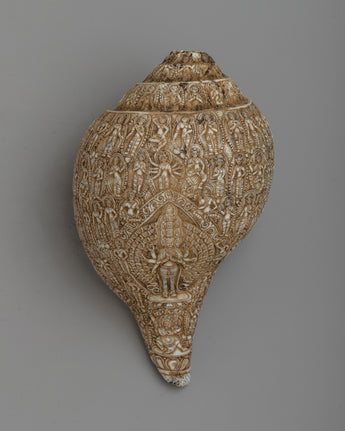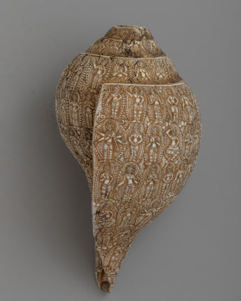 Discover the heavenly force and enter the hallowed realm of our exquisitely carved Shankha deities. This conch shell is adorned with exquisite carvings of different deities, created with unmatched artistry and painstaking attention to detail, attracting blessings and spiritual resonance into your life.