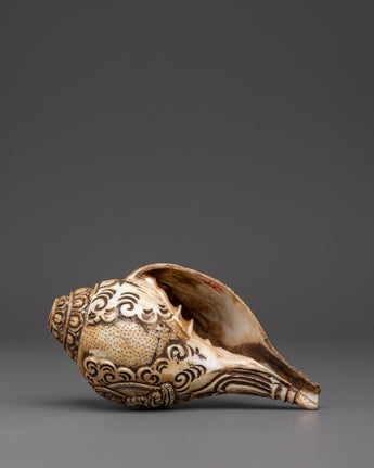 Dung-Dkar with Chenrezig Carving | Sacred Sound for Rituals
