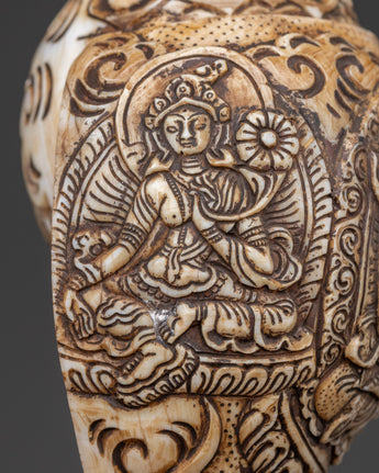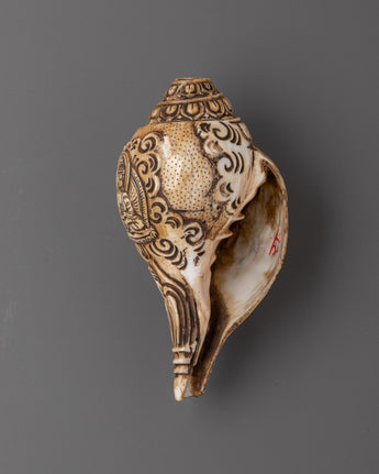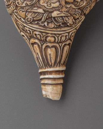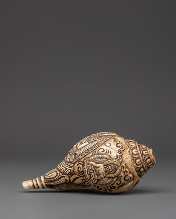 Tibetan Ritual Dung-Dkar with Chenrezig Carving | Spiritual Sound Instrument for Meditation