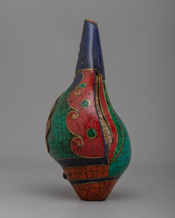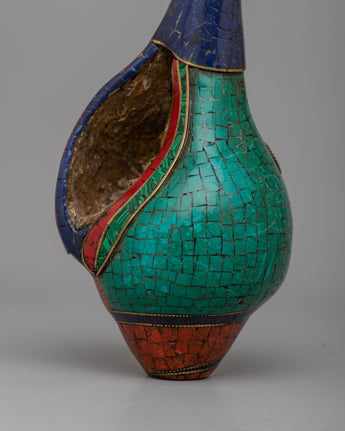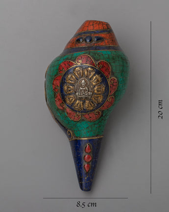 You can sense the energy of devotion and skill that went into making this beautiful Gemstone Sankha as you hold it in your hands. It acts as a potent reminder of the spiritual path and the embedded customs that still motivate enlightenment seekers today. By means of this divine instrument, you are invited to enter the sacred and establish a spiritual resonance and connection with ancient wisdom.