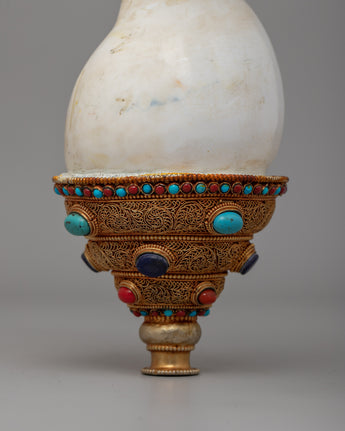 Gold-Plated Ritual Conch Shell | A sacred Buddhist Artifact for Decor and Rituals