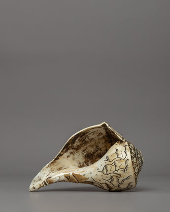 Hand-carved Conch (Sankha) - Sacred Symbol of Power & Enlightenment