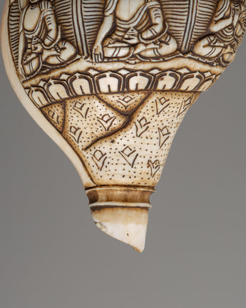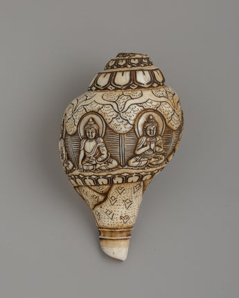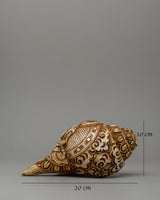 This ritual conch shell is expertly crafted and hand-carved by skilled artisans, ensuring that each and every detail symbolizes Tibetan spiritual craftsmanship. Its significance is enhanced by the sacred symbols and detailed engravings, which make it perfect for spiritual rites, Buddhist ceremonies, and sound healing. With its powerful vibrations and divine advantages, this sacred Shankha can be a meditation tool or a decorative spiritual artifact.