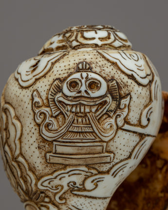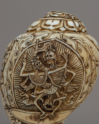 Our Handcarved Conch Shell Sankha, a masterpiece carefully made from conch shell to enhance your spiritual practices, is now available. Your rituals will be enhanced by the captivating figure of Chitipati, a vindictive deity in Tibetan Buddhism, whose intricate carvings are at their core.