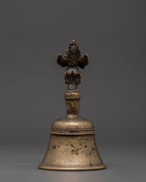 Bell is regarded as one of Buddhism's powerful meditational and ritual symbols. During the rituals or Vajrayana Tantric practice, Ghanta, alongside the dojre, is used in conjunction. The Dorje is held in the right hand, and the bell is on the left; they are never isolated from one another. The bell represents the feminine principle as the ‘perfection of wisdom which directly perceives emptiness (shunyata). It is defined as "proclaiming the sound of nothingness," which originates from the voidness of its shape, radiates in all directions, and then dissipates into silence or emptiness. Its hole, or mouth, represents nothingness, while its clapper, or tongue, represents the shape.