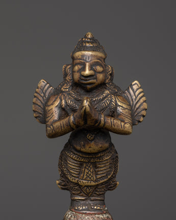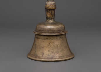 This handmade bell, measuring 19.5 cm in height and 10 cm in width, is skillfully crafted from bronze and symbolizes artisanal heritage. It provides the ideal balance of beautiful lightness and significant presence at a stylish 0.057 kg. A complex acoustic character that will appeal to discriminating collectors and practitioners, the bell's proportions have been carefully adjusted to provide a resonant tone that develops with exceptional clarity and sustain. Each piece has slight differences that set authentically handcrafted items apart, making them both highly distinguished objets art and useful tools.