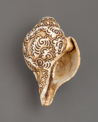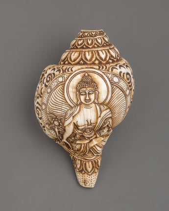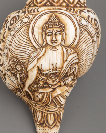 Medicine Buddha Carved Conch | Spiritual Buddhist Intricate Artwork